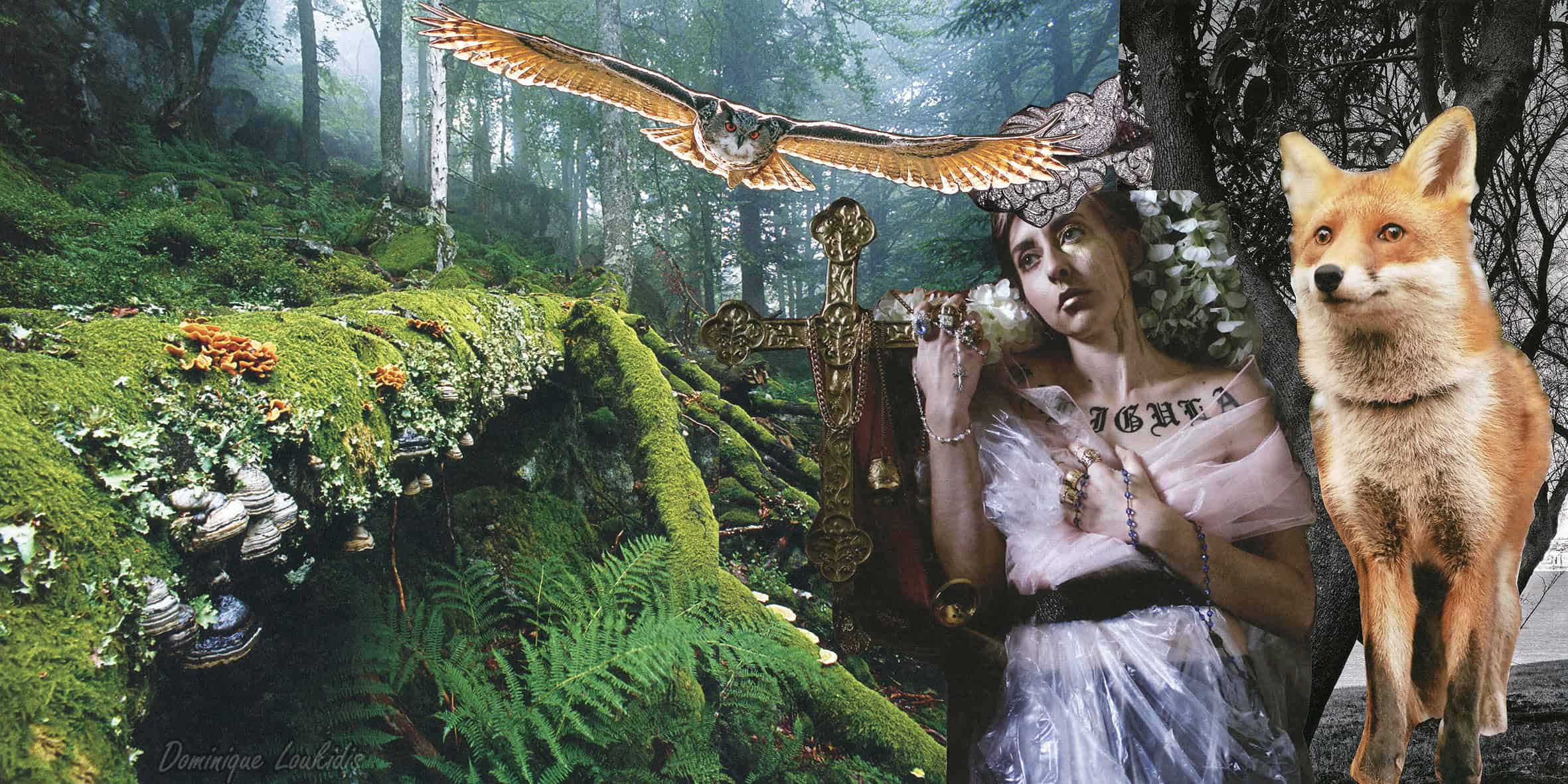 Ce photomontage évoque l’ambiance d’une forêt mystérieuse, avec une esthétique qui amène le spectateur dans un univers fantastique et magique.