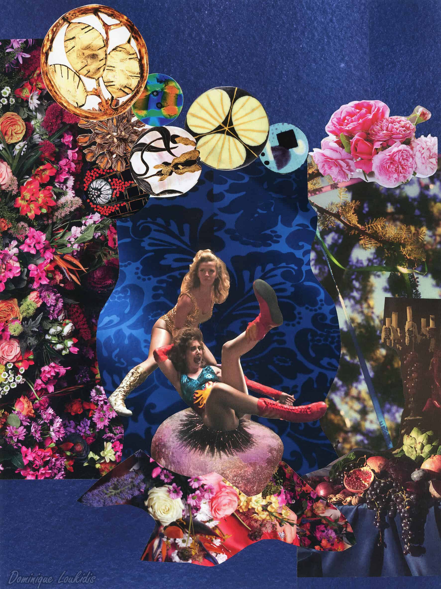 Un montage coloré et floral met en scène 2 catcheuses, un clin d’oeil comme une fleur au bout d’un fusil.